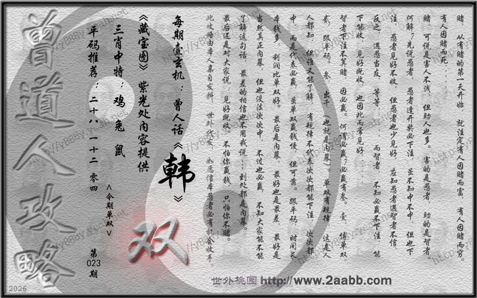 | 请把世外桃园以下网址,告知身边的彩友! |